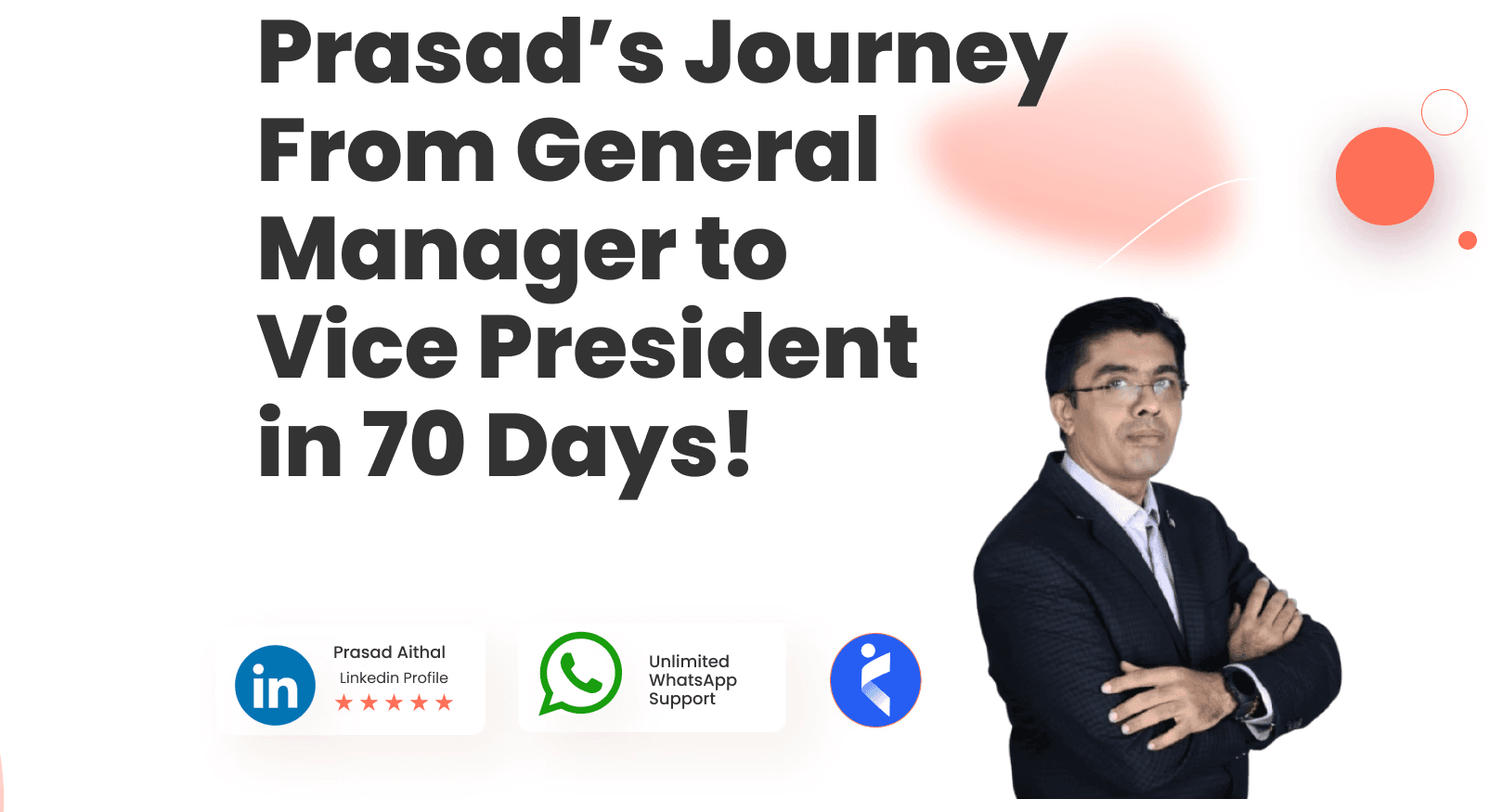 Prasad Aithal - a General Manager at a leading media house - successfully accelerated his career into a Vice President role in just 70 days. After joining JobSurge, Prasad followed a targeted executive-level strategy designed to position him for senior leadership roles. He began with a complete overhaul of his Naukri and LinkedIn profiles, transforming them into high-impact executive assets that showcased his leadership outcomes, P&L ownership, growth achievements, and industry influence - not just responsibilities. This repositioning helped him attract senior-level recruiter outreach and hiring conversations quickly.