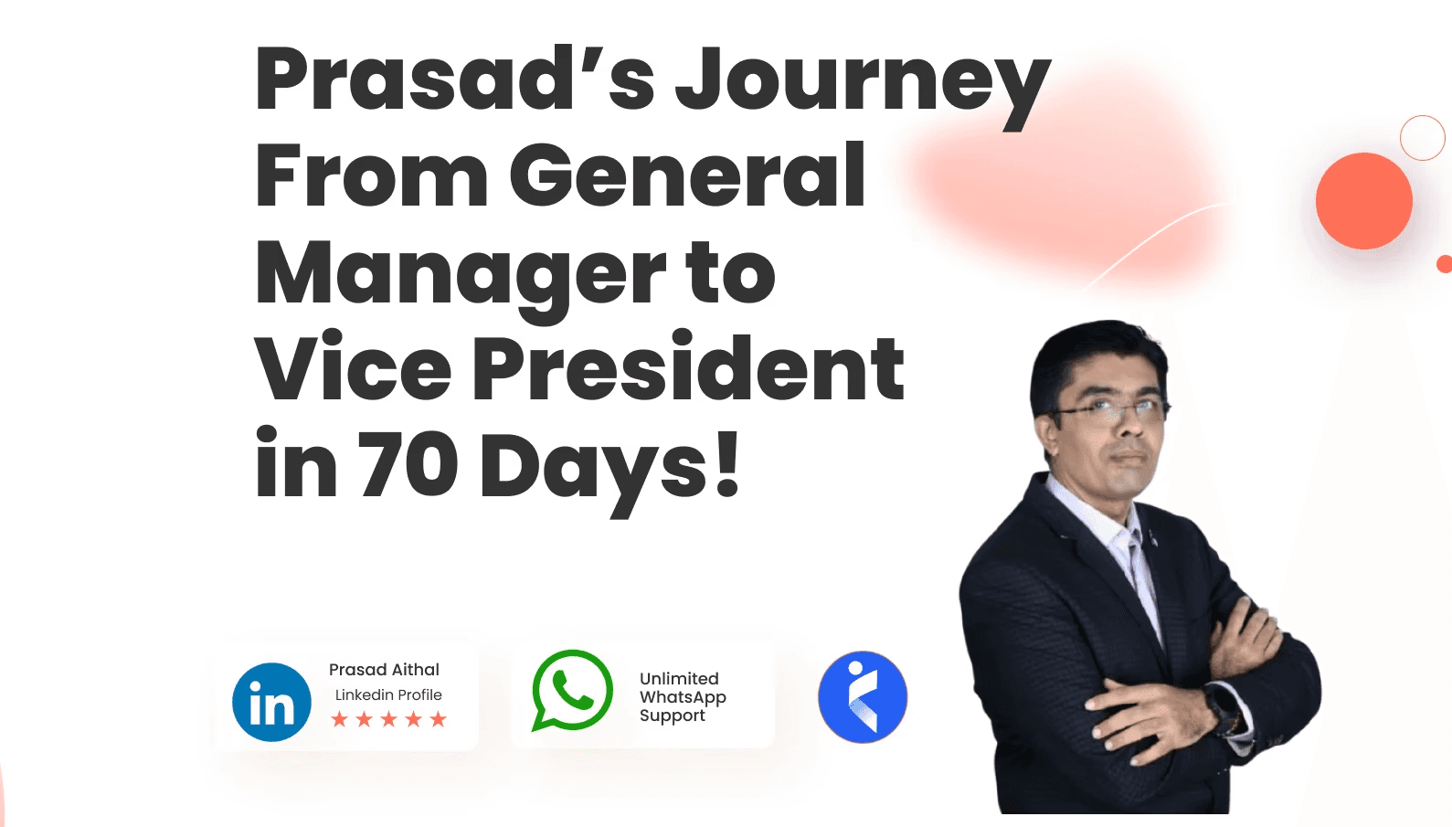 Prasad Aithal - a General Manager at a leading media house - successfully accelerated his career into a Vice President role in just 70 days. After joining JobSurge, Prasad followed a targeted executive-level strategy designed to position him for senior leadership roles. He began with a complete overhaul of his Naukri and LinkedIn profiles, transforming them into high-impact executive assets that showcased his leadership outcomes, P&L ownership, growth achievements, and industry influence - not just responsibilities.